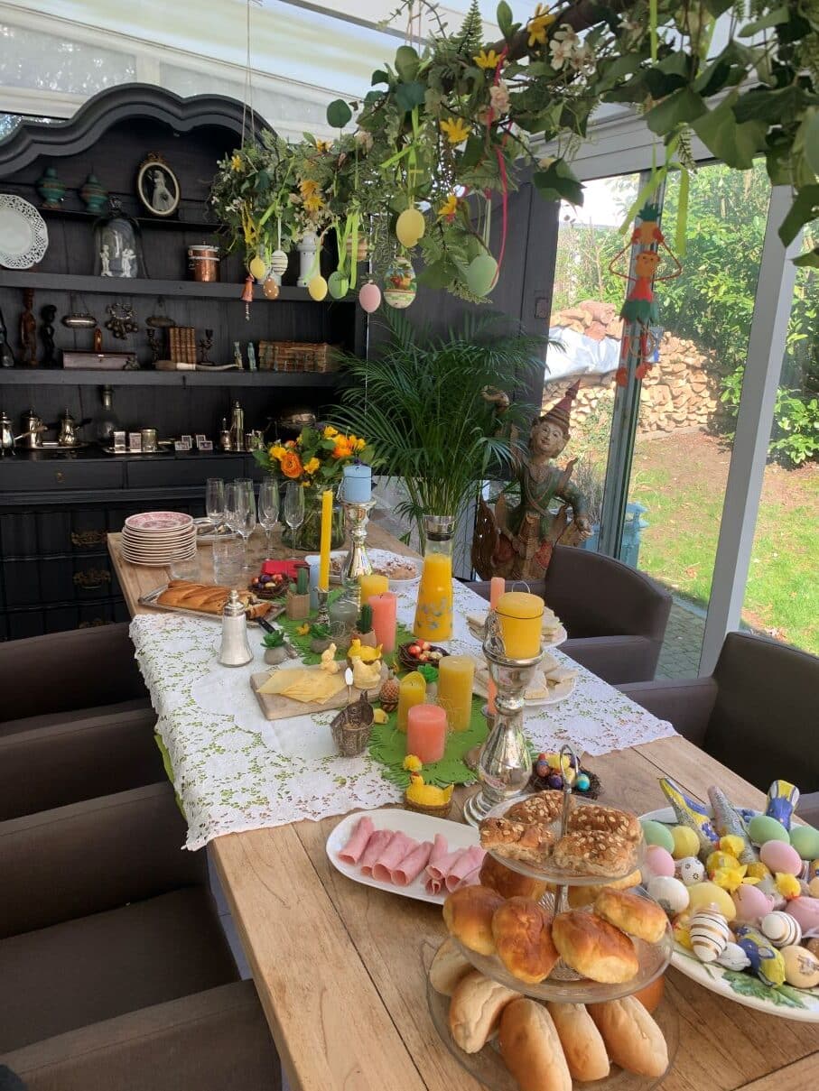 Une table décorée pour un brunch de Pâques